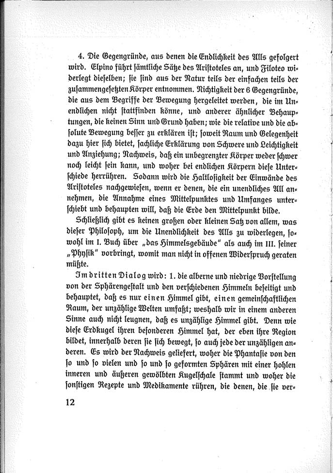 Giordano Bruno, Zwiegespräche vom unendlichen All und den Welten , trad. Kuhlenbeck (1904), p. 12